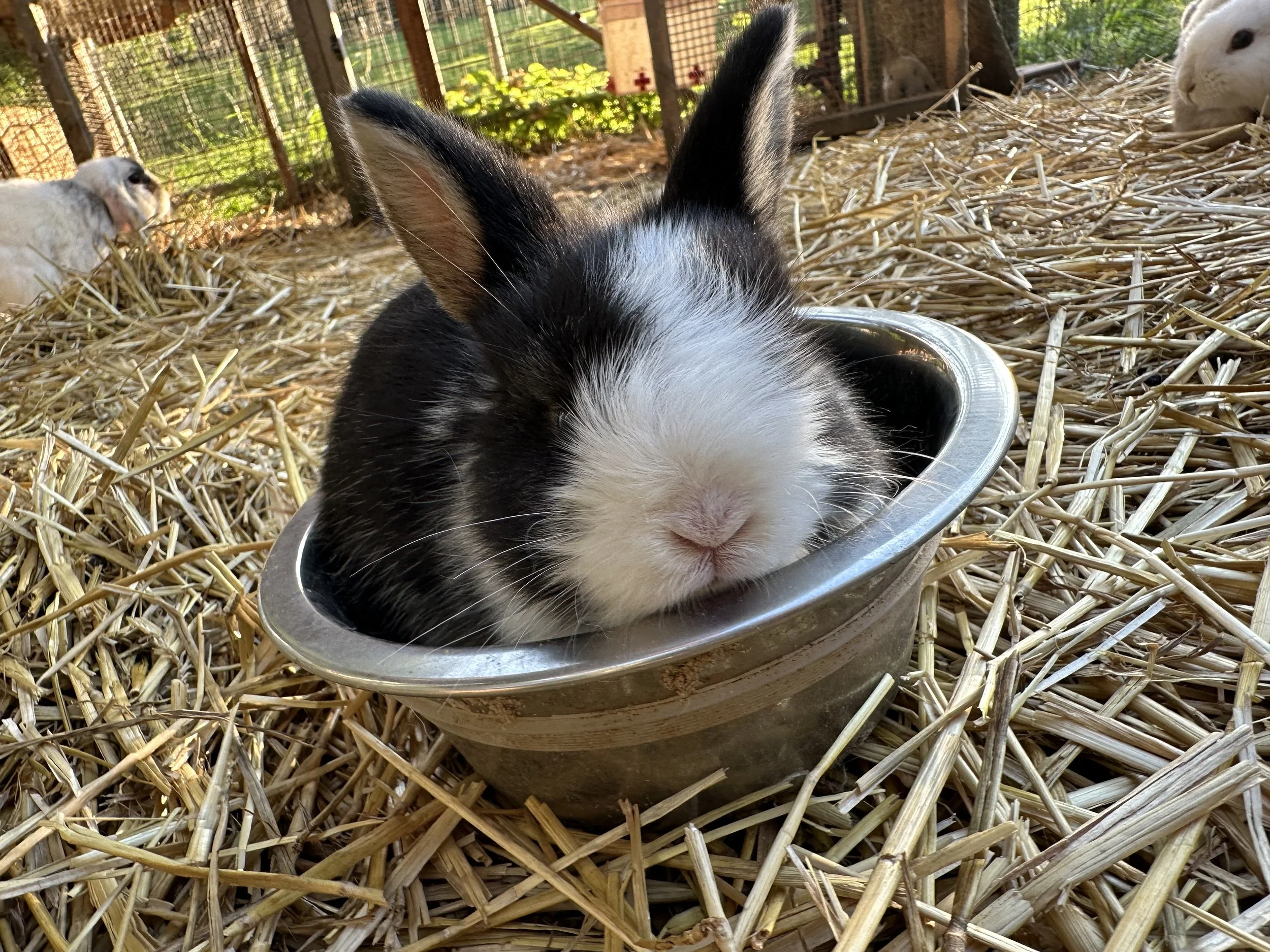 Creating a harmonious ecosystem is our top priority at our farm. Our bunnies are born and raised outdoors in a natural environment. They are accustom to being around other animals including large dogs. They will fit in perfectly with the entire family.